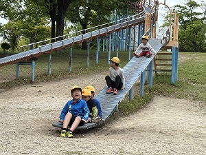 おにごっこをして遊んだり、ローラーすべり台などの遊具で遊んだりして