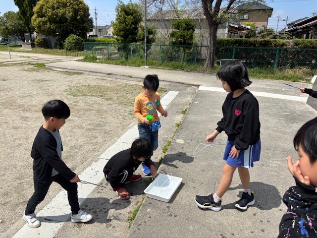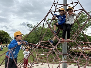 少し風が強くて、レジャーシートやお菓子の袋が飛ばされそうになった子